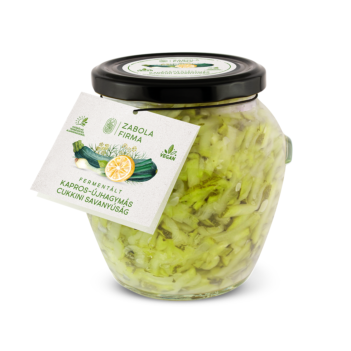 Nyáridéző savanyúság, amelyben a zsenge cukkini csíkok citrommal, kaporral és újhagymával vannak megbolondítva.